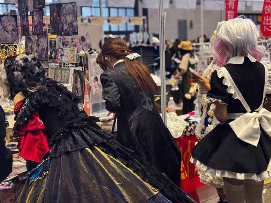 cp漫展上,爱好者们翻看摊主自制的周边。林子璐/摄。